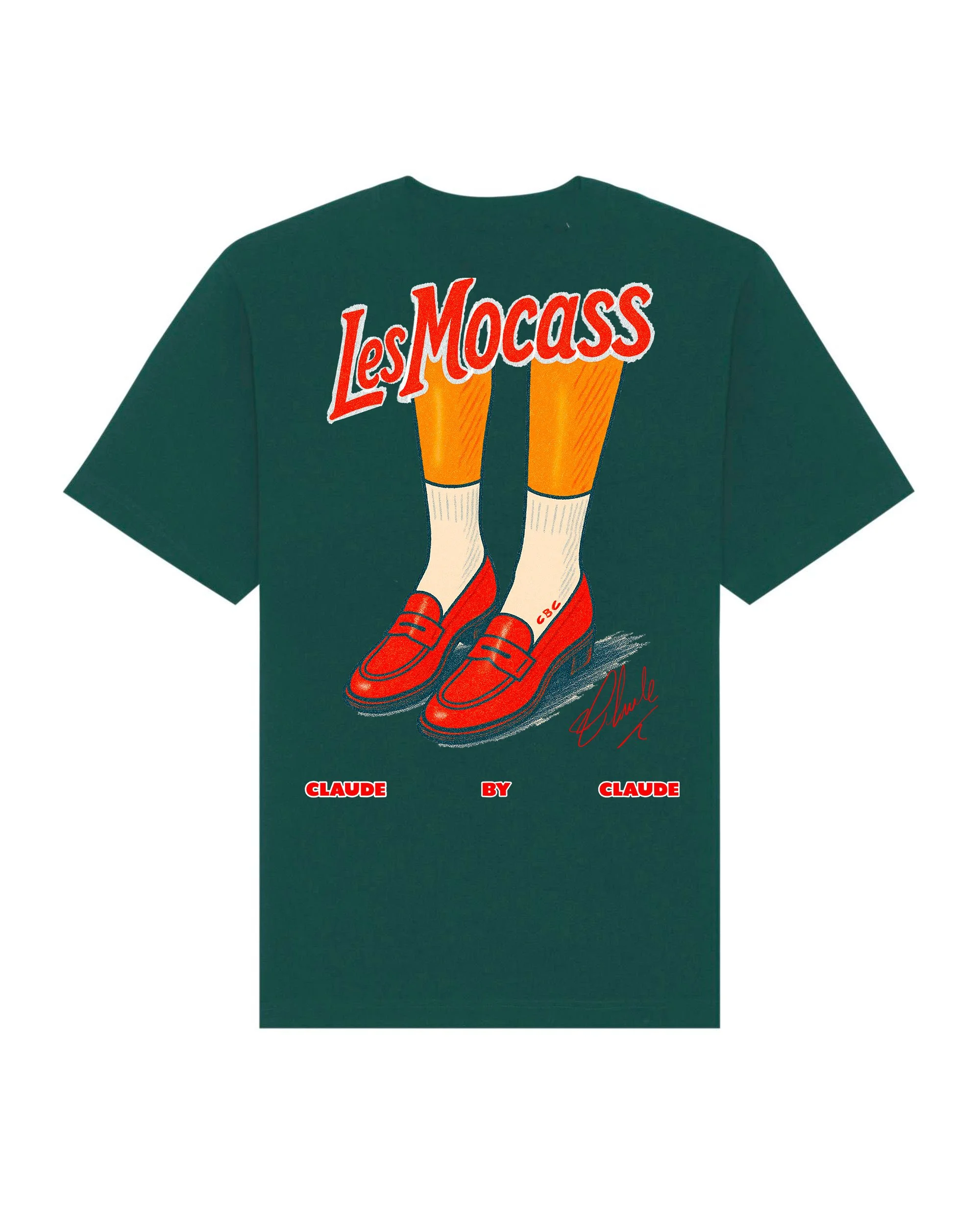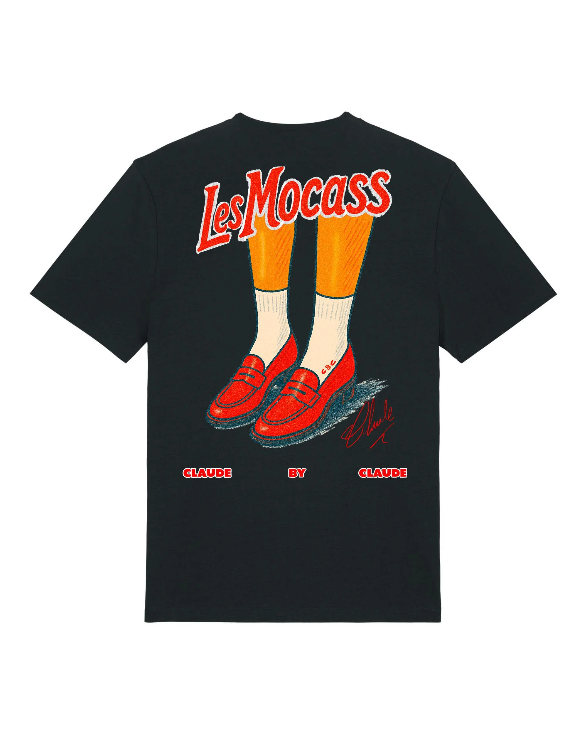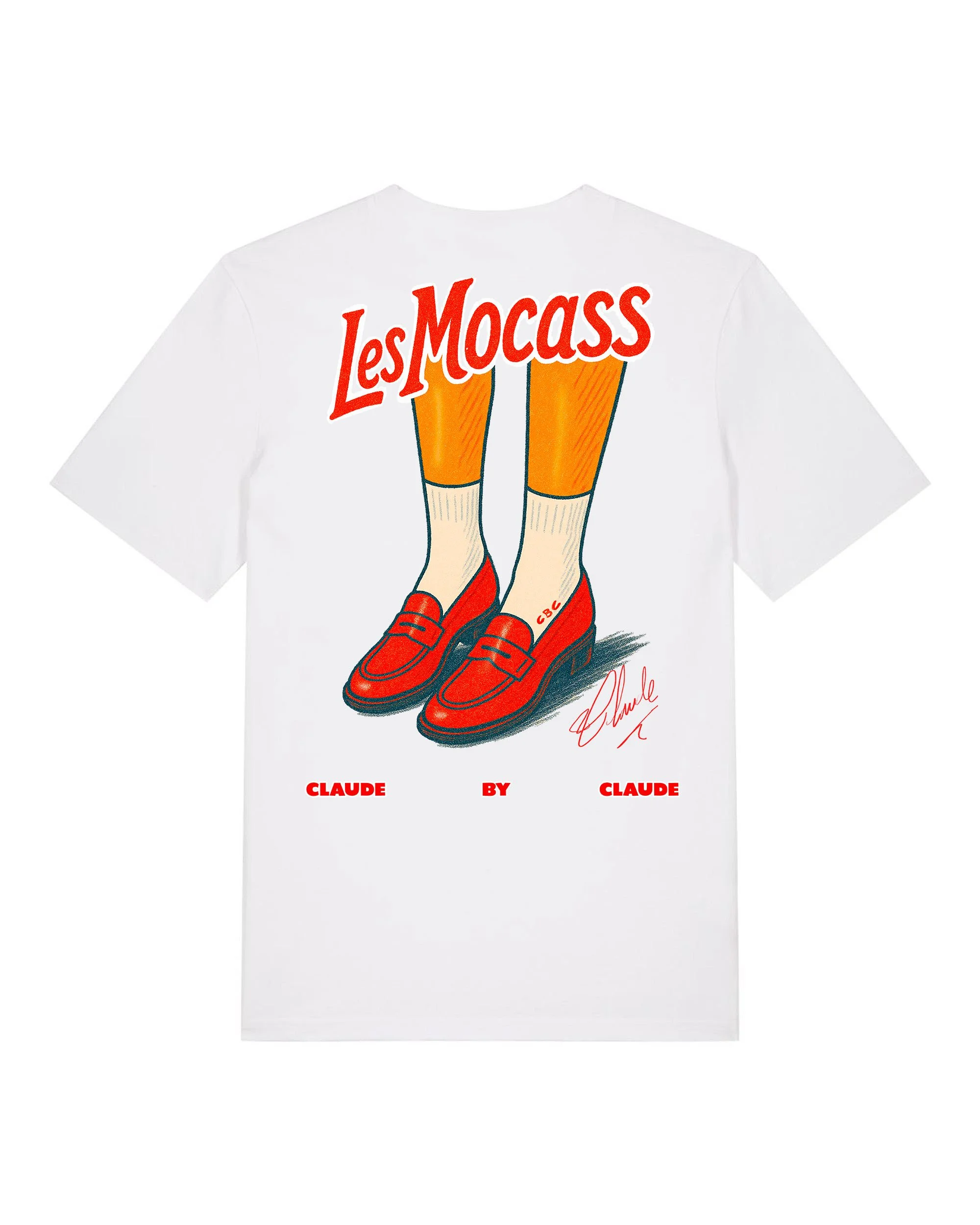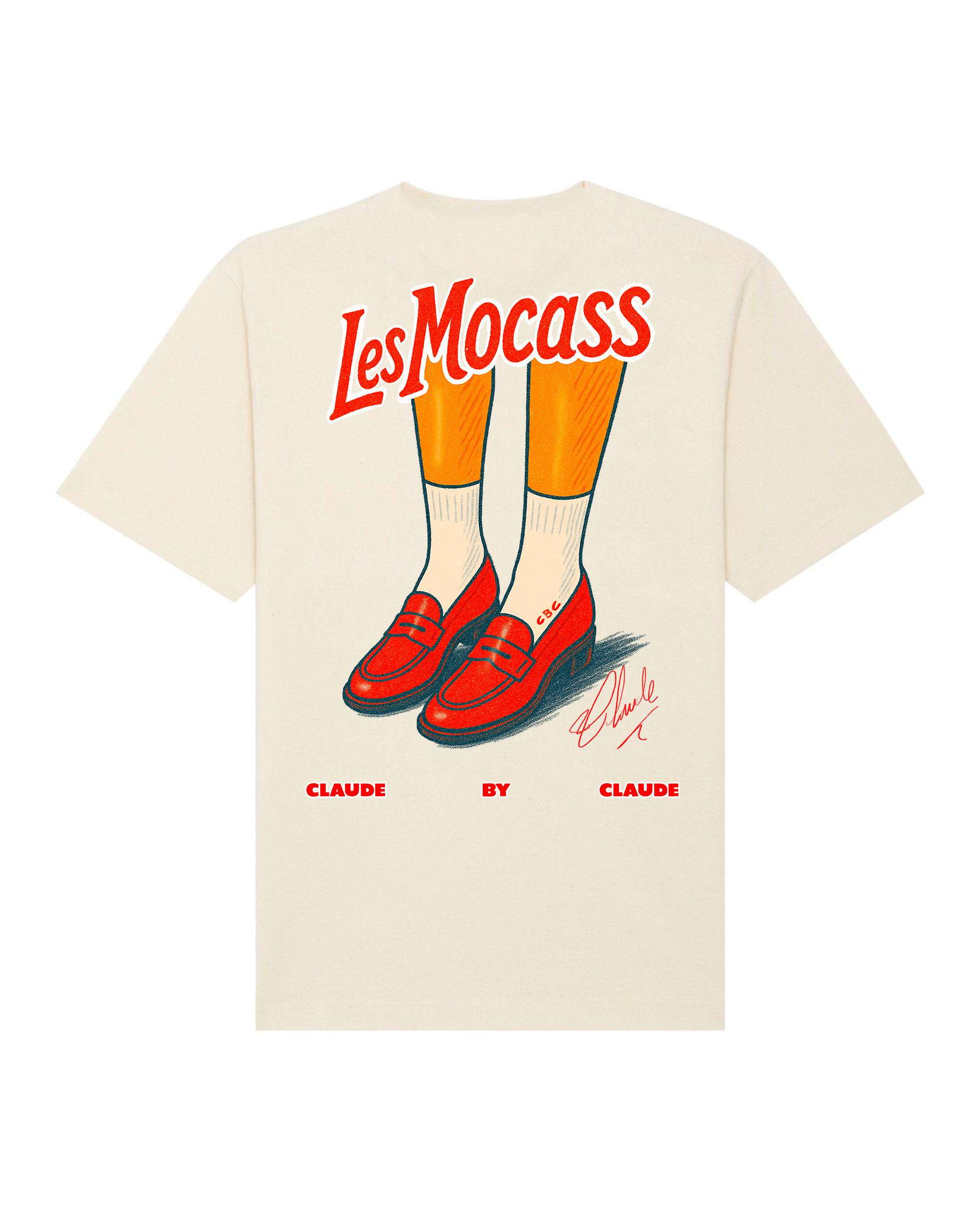 T-shirt graphique arborant le visuel ‘i Love Claude’ rouge détourée sur un fond rose pâle.